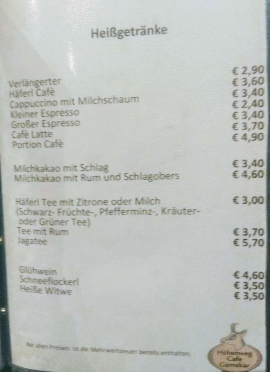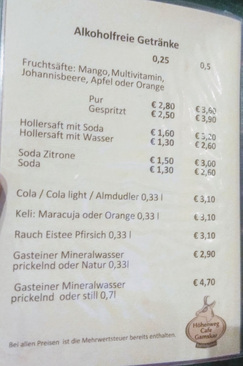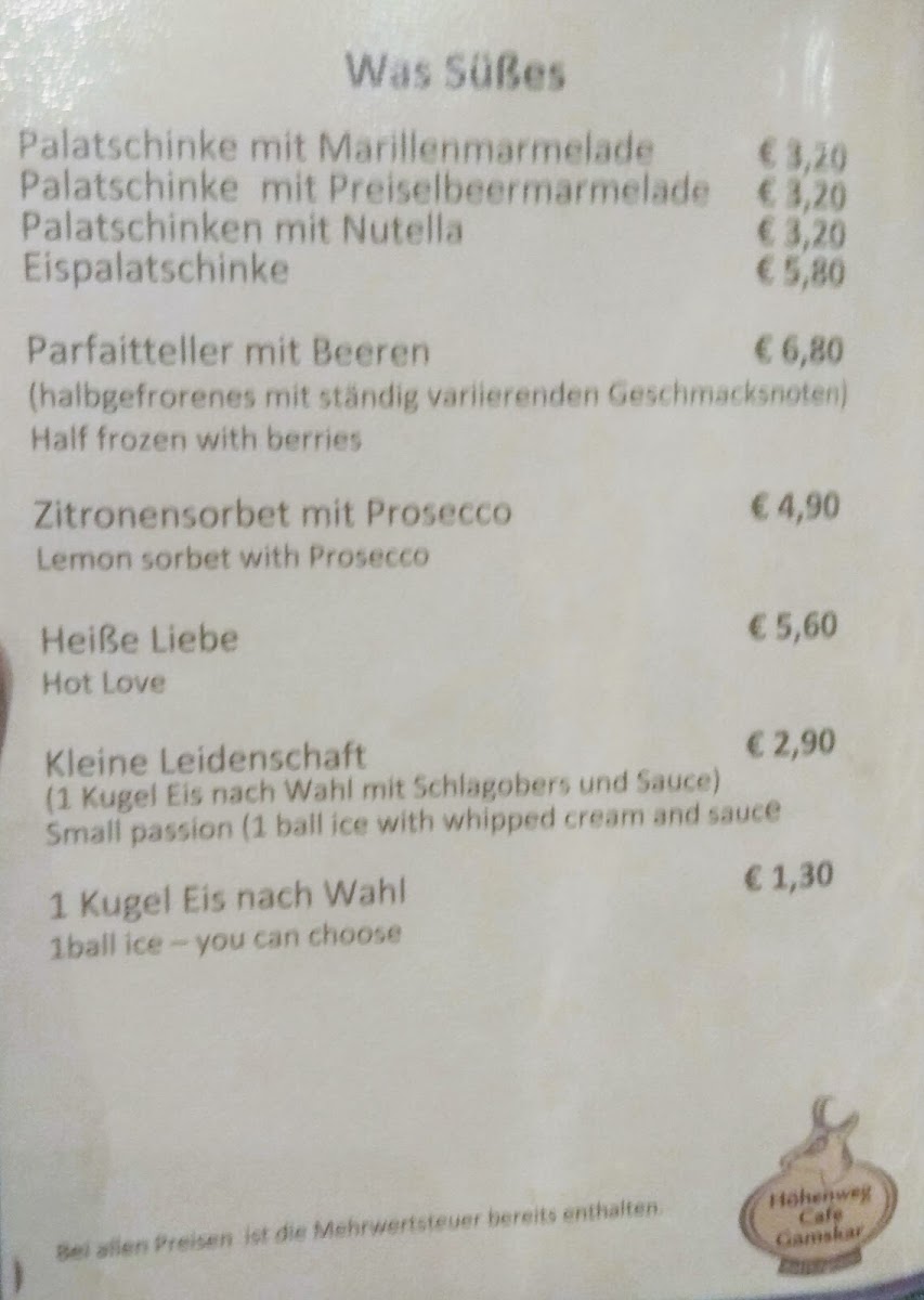 Höhenweg Cafe Gamskar Bad Hofgastein Menu